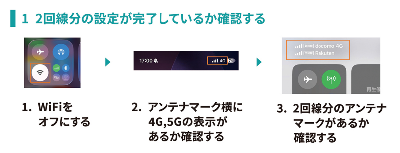 スマホの画面には2つのアンテナが表示され、状況に応じて使いたい回線を選べます。切り替えは設定画面からわずか3タップで完了するため、難しい操作は一切必要ありません。