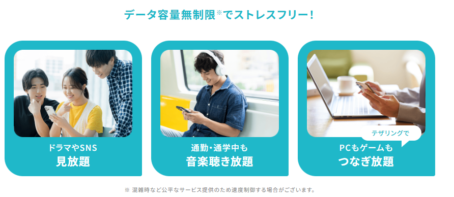 ※1:混雑時など公平なサービス提供のため速度制御する場合があります